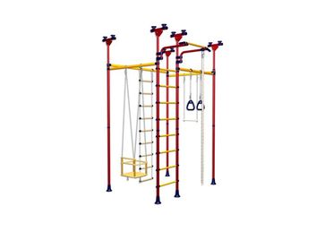 омплекс представляет собой сборно-разборную металлическую 5-опорную конструкцию. Крепится враспор между полом и потолком. Металлическая шведская стенка с мягкими обрезиненными перекладинами — Возможные цвета: сине-желтый, зелено-желтый, красно-желтый — Крепление: враспор между потолком и полом Комплектация: — трапеция — веревочная лестница — кольца гимнастические — канат — качели