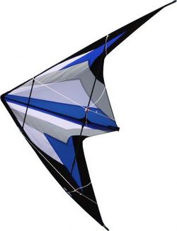 Спортивный воздушный змей. Размах крыла 1,8 метра. Каркас - стеклопластик. Стропы - плетеный капрон Крыло - армированный нейлон В комплекте: стропы 2х25, чехол из плотной ткани. Воздушные змеи