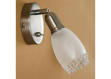 Материал арматуры:Металл, Материал плафона:Стекло, Цвет арматуры:Хром, Цвет плафона:Белый матовый, Ширина (Диаметр), см:7, Высота, см:11, Площадь освещения, м.кв.:2, Количество ламп, шт:1, Тип цоколя:E14, Мощность, Вт:60W, Дополнительная информация:С выключателем. Размер головки 15 см, Коллекция:Мери None