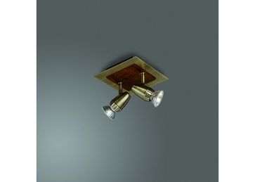 Ширина: 150 ммГлубина: 150 ммВысота: 100 ммТип патрона: GU10Количество ламп: 2Х50ВтНапряжение: 220 вольтМощность: 100 ВтЦвет: античная бронза, коричневыйМатериал: металл, деревоКоличество в наборе: 1 штЛампочки в комплекте: есть None