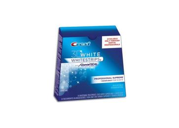 Отбеливающие полоски Crest 3D White Whitestrips with Advanced Seal Professional Supreme содержат 14% перекиси водорода в каждой пластинке и отбеливают на 80% лучше, чем самые сильные отбеливающие полоски. Стоматологи рекомендуют Crest 3D White Whitestrips with Advanced Seal Professional Supreme.