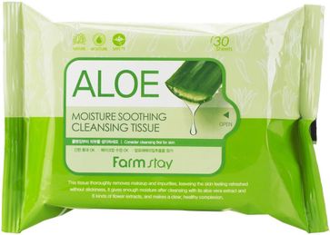 - Farmstay Aloe Moisture Soothing Cleansing Tissue 30 салфеток в пачке по выгодной цене 169 р. руб.;