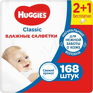 - Huggies Classic 168 салфеток в пачке в каталоге Средства для гигиены полости рта в Москве;