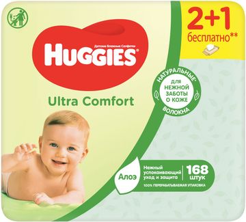 - Huggies Ultra Comfort Алоэ 168 салфеток в пачке по выгодной цене 505 р. руб.;