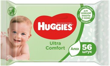 - Huggies Ultra Comfort Алоэ 56 салфеток в пачке по выгодной цене 245 р. руб.;