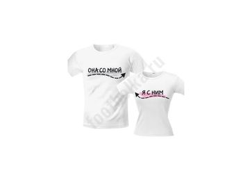 - Футболки для влюбленных "Я с ним Она со мной" по выгодной цене 1 350 р. руб.;