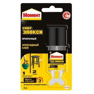 - Клей МОМЕНТ Супер эпокси, шприц, 6 мл., в блистере (804437) по выгодной цене 90 р. руб.;
