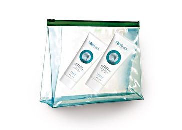 В подарочной косметичке из прозрачного пластика – препараты «Дуэт счастливая кожа» для ухода за кожей тела: скраб с морской солью 75 мл и увлажняющий крем для тела 75 мл. None