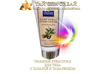 Травяной крем-скраб для тела с танакой и тамариндомSupaporn Body Scrub Herbs Cream. Танака или «золотая пудра», главный ингредиент крема-скраба для тела, обладает сильными увлажняющими и антибактериальными свойствами, обеспечивает идеальный баланс жирности и влажности кожи, обновляет кожу и улучшает микроциркуляцию.