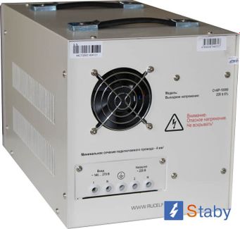 Недорогой напольный релейный стабилизатор с максимальной мощностью 10 кВт. Выходное напряжение 220В с погрешностью в 6% Мощность: 12000ВА Официальный дилер. Безнал, карта, наличные. Есть доставка.