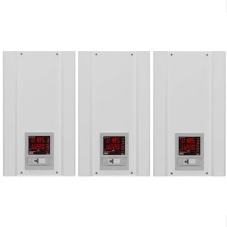 Симисторный трёхфазный стабилизатор напряжения на 30 кВт. Состоит из трёх однофазных блоков на 10 кВт. Диапазон - 135-285 вольт Мощность: 30000ВА Официальный дилер. Безнал, карта, наличные. Есть доставка.