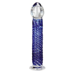 Красивый стимулятор со стволом, украшенным тонкой синей спиралью, рельеф которой оказывает дополнительную стимуляцию. Стимулятор ручной работы из прозрачного закаленного стекла, которое является абсолютно гипоаллергенным и безопасным. Диаметр ствола - 2,5 см. None