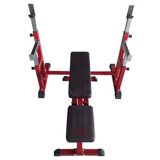 Тренажер со свободными весами. Позволяет выполнять широкий спектр упражнений со штангой. В комплекте поставляется силовая скамья и силовая стойка для штанги. Сиденье и спин None