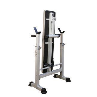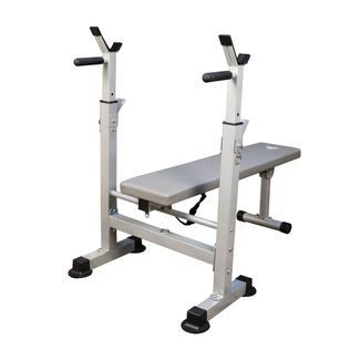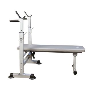 Скамья силовая со стойками под штангу. Предназначена для выполнения различных упражнений: жим штанги лежа, отжимания на брусьях и другие. Стойки под штангу регулируются по в None