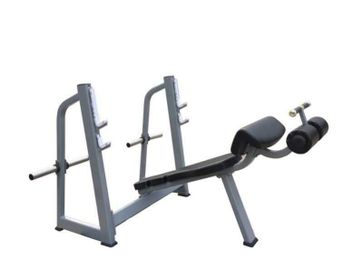 Олимпийская скамья для жима лежа с отрицательным углом Наполнение сиденья: плотный поролон Цвет сиденья: черный Вес тренажера: 85 кг Профиль: 100503 мм Габариты тренажера: 1540 x2010 x 122 см. None