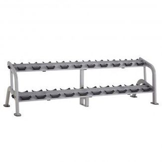 Стойка для гантелей (два ряда) Рама: Овальный профиль 50 x 150 мм (толщина 2,5 мм) Порошковое покрытие, нанесенное электростатическим способом Сварка: непрерывная по всем стыкам Вес тренажера: 69.5 кг Размеры - ДxШxВ: 242 x 83 x 75 см None