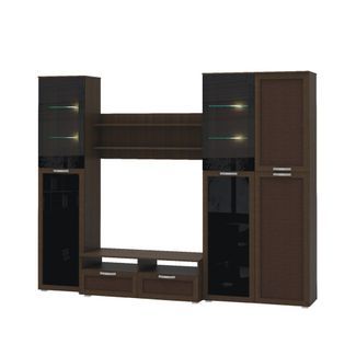 Домино 2 Стенка Размер: 2658 х 516, В 2102 мм Ниша под TV: 1180 х 981 мм Материал: ЛДСП 16 мм и 22 мм/профиль МДФ Фурнитура: Распашные двери на четырёхшарнирных петлях; выдвижные ящики на роликовых направляющих. В стенке использовано 3 типа фасадов: - легко тонированное стекло; - профиль – Венге, заполнение – стекло прозрачное крашеное; - профиль – Венге, заполнение – КМДФ под кожу. Верхние полки оснащены подсветкой. Минимальная сумма заказа 1000 рублей. Возможен самовывоз.