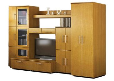 Выполняется с фасадами из МДФ. Цветовая гамма данной гостиной подойдет как для светлых, так и для комнат выполненных в темных тонах. Большим плюсом является большое колличество отсеков для хранения вещей и разных мелочей. В стенке есть место для телевизора. None Есть доставка.