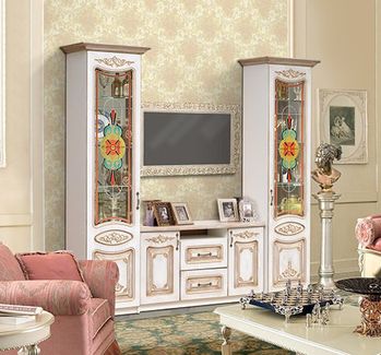 - Стенка "Вивальди-1" компл.1 белое дерево, золото с витражами по выгодной цене 34 560 р. руб.;