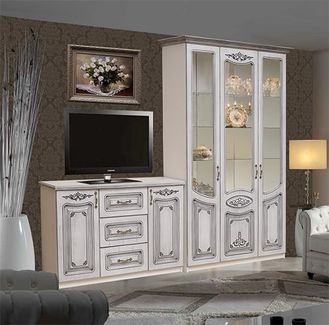 - Стенка "Вивальди-1" компл.2 белое дерево, патина черная в каталоге Стенки для гостиных в Москве;