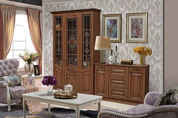 - Стенка "Вивальди-1" компл.2 яблоня, патина черная в каталоге Стенки для гостиных в Москве;