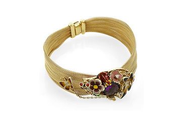 Браслет с бриллиантом, аметистом и эмалью из коллекции Roberto Bravo изготовлен из желтого золота 585 пробы.