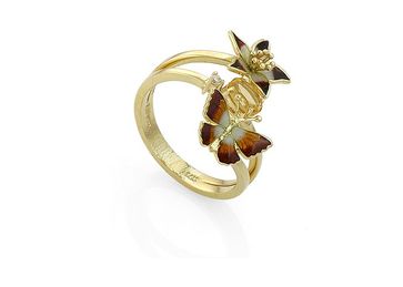 Кольцо Roberto Bravo с драгоценными и полудрагоценными камнями изготовлено из золота 585 пробы.