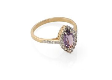 Кольцо с аметистом и фианитами изготовлено из красного золота 585 пробы. None Возможен самовывоз.