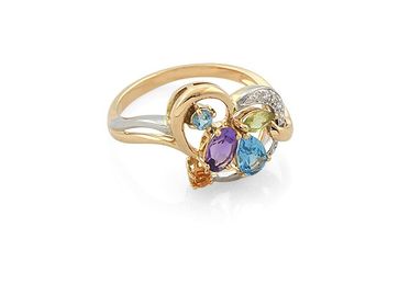 Кольцо, вставки: бриллианты, аметист, топаз, хризолит, цитрин
