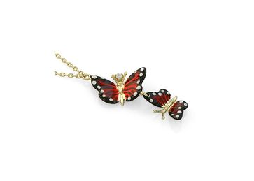 Подвеска с цепочкой (45 см) из коллекции Roberto Bravo с драгоценными и полудрагоценными камнями изготовлена из желтого золота 585 пробы. Вставка: бриллиант, эмаль.