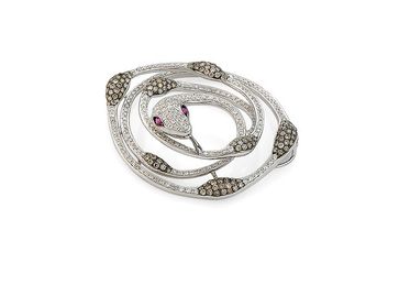 - Подвеска с рубинами и бриллиантами в форме змеи по выгодной цене 127 073 р. руб.;