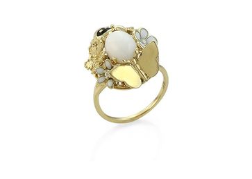 Кольцо Roberto Bravo с драгоценными и полудрагоценными камнями изготовлено из золота 585 пробы.
