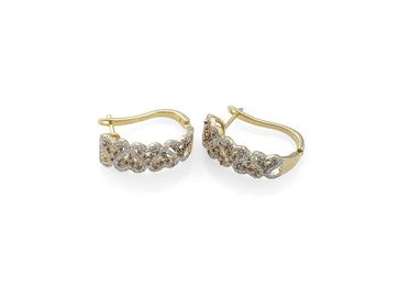 Серьги с фантазийными бриллиантами изготовлены из золота 585 пробы. Характеристики вставок: 170бр кр17 0.37 2/3 30фант.бр кр57 0.32 None Возможен самовывоз.