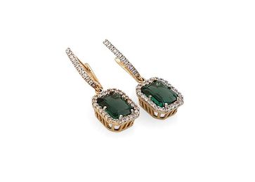 Серьги выполнены из золота 585 пробы. Вставка: 2 хромдиопса 0.00, фианиты. None Возможен самовывоз.