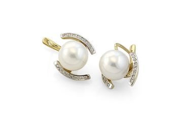 Серьги с жемчугом и бриллиантами изготовлено из желтого золота 585 пробы. Характеристики вставок: 32 бриллианта кр57 0.194 ct 3|4, 2 жемчуг. None Возможен самовывоз.