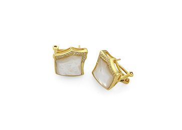 Серьги с перламутром и фианитами изготовлены из серебра 925 пробы. None Возможен самовывоз.