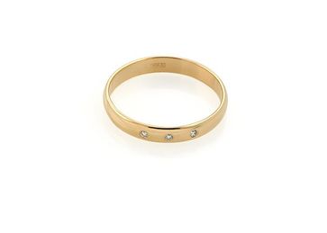 Обручальное кольцо выполнено из красного золота 585 пробы. Вставка: 3 бриллианта Кр. 57-0.03-3/5. Ширина изделия 3,5 мм. Просим обратить Ваше внимание, что цена на изделие может варьироваться в зависимости от размера и характеристик вставок. Срок доставки данного изделия от 2-х до 4-х дней. None Возможен самовывоз.