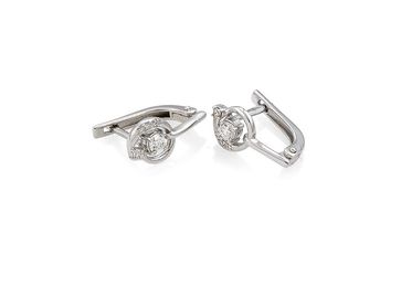 Серьги с бриллиантами изготовлены из золота 585 пробы. Характеристика вставок: 2бр кр57 0.28 3/4 8бр кр57 0.08 3/5