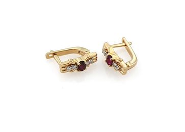 Серьги выполнены из золота 585 пробы. Вставка: 8 бр. кр57 0.15 3/5, 2 рубинов 0.40 2/2. Сделано в России None Возможен самовывоз.