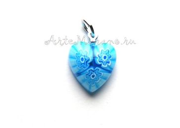Стеклянное сердце 1,4х1,5 см. Есть большое сердце 2,6х2,8 см и среднее 1,8х1,9 см. Муранское стекло, серебро None