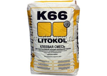 - Клей плиточный LITOKOL LITOFLOOR K66 ЛИТОКОЛ ЛИТОФЛОР К66 для керамогранита толстослойного (25 кг) по выгодной цене 400 р. руб.;
