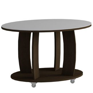 Овальный журнальный столик — стильное дополнение в гостиную или спальню. Широкая столешница позволит сервировать чай к приходу гостей. Нижняя полочка удобна в хранении нужных под рукой мелочей. Модель элегантна в исполнении и найдет свое место в классическом интерьере комнаты. Колесики в основании позволят легко перемещать столик в пространстве. Корпус изготавливается из ЛДСП. Покрытие столешницы — стекло. None Возможен самовывоз. Есть доставка.