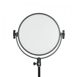 Круглый (диаметр 28 см) светодиодный осветитель GreenBean MoonLight 120 LED bi-color. Максимальная мощность 67 Вт, цветовая температура от 3200 К до 5600 К; возможность при установленной (зафиксированной) мощности изменять цветовую температуру. Питание от сети или аккумуляторов NP-F или V-mount. None