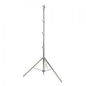 Стальная стойка для студийного оборудования, максимальная нагрузка 20 кг, максимальная высота 453 см, телескопическая колонна из 4 секций, телескопическая нога, шпигот 5/8", отверстие 1⅛” (junior), металлические винтовые зажимы. None