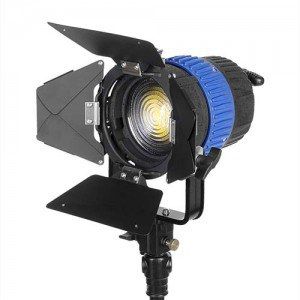 Студийный светодиодный осветитель с байонетом Bowens, асферическая линза и линза Френеля, мощность светодиода 90 Вт, плавная регулировка яркости 10-100%, восьмилепестковые шторки и конверсионный фильтр в комплекте, возможность питания от аккумулятора 12-24В и от аккумуляторов V-mount, вес осветителя... None