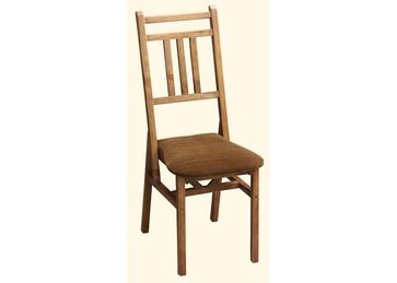 Классический стул выполнен из массива сосны, тонирован в цвет орех. Конструкция включает в себя треугольники и ребра жесткости, которые предотвращают раскачивание стула как вперед-назад, так и вправо-влево. Сиденье изготовлено из фанеры, покрыто мебельным поролоном и обтянуто флоком отличного качества.