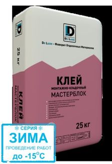 - Монтажно - Кладочный Клей Мастерблок Зима 25 кг Серый De Luxe по выгодной цене 200 р. руб.;