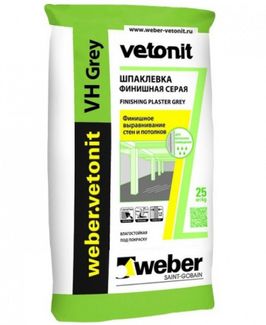 - Шпаклевка финишная серая влагостойкая weber.vetonit VH. 25 кг по выгодной цене 522 р. руб.;