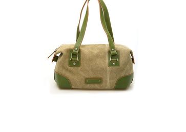 Сумка из комбинации кожи и холста. Основное отделение на молнии, два внутренних открытых кармана, один внутренний карман на молнии, карабин для ключей, подкладка из хлопка в полоску.Цвет: Зеленый; Материал: Кожа, хлопок; Производитель: Италия; Размер: 42х26,5х12 см; None Есть доставка.