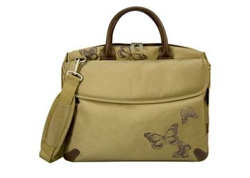 Красивая женская сумка бежевого цвета с коричневой фурнитурой для ноутбуков с размером экрана до 15 дюймов. Удобные ручки и внутреннее устройство. Внутренние стенки с уплотнителем для защиты ноутбука. Пристегивающийся дополнительный мини кошелек с застежкой-молнией. Материал - нейлон, цвет - бежевый и коричневый с рисунком. Размеры 39.4x31.1x8.3 см, главное отделение: 36.8x26.7x6.4 см. None Есть доставка.